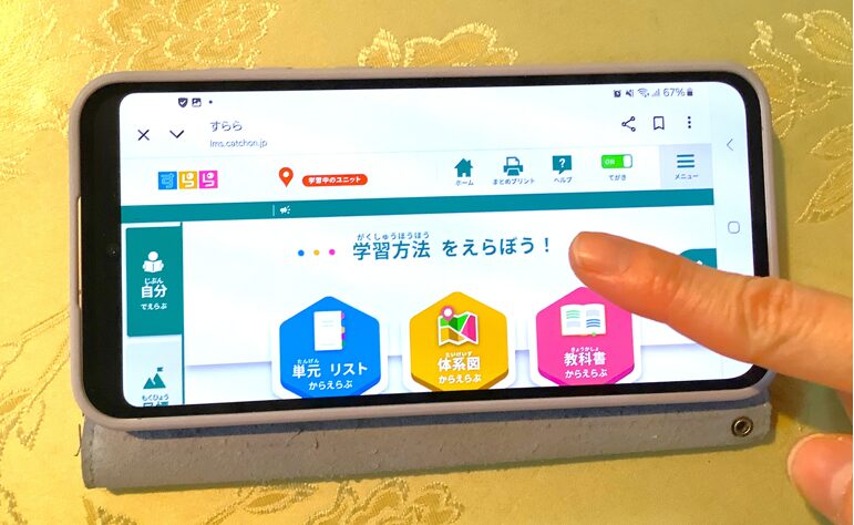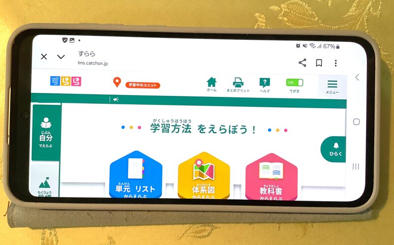 すららが推奨するディスプレイが8.9インチ以上。私のgalaxy s25スマホは6.2インチなので、やはりスマホだと小さすぎるようです。
