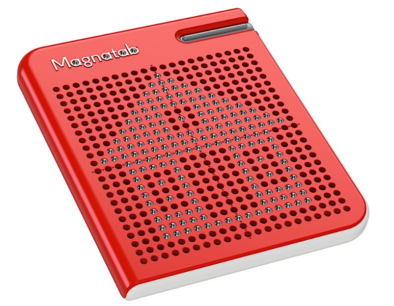 マグタブは、磁石のペンでなぞると、盤面からプチプチって銀色の玉が出てきて、ドット絵みたいになるおもちゃです。