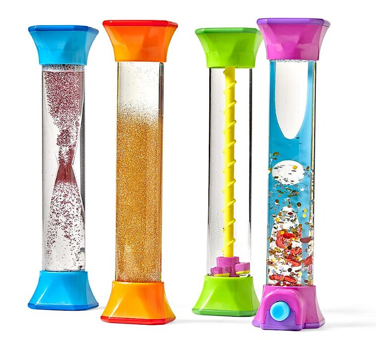 4本それぞれに違った色や動きがあって、子どもがパニックになりかけたときでも、このボトルをじっと見つめているうちに、落ち着いたという声もあります。