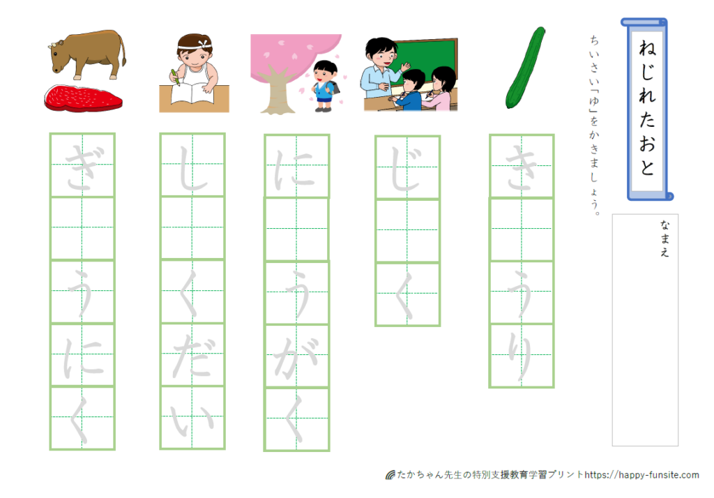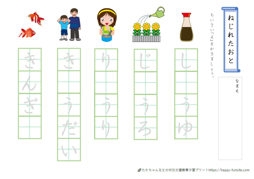 拗音の読み書きが自然に身につく学習プリントを作成しました。