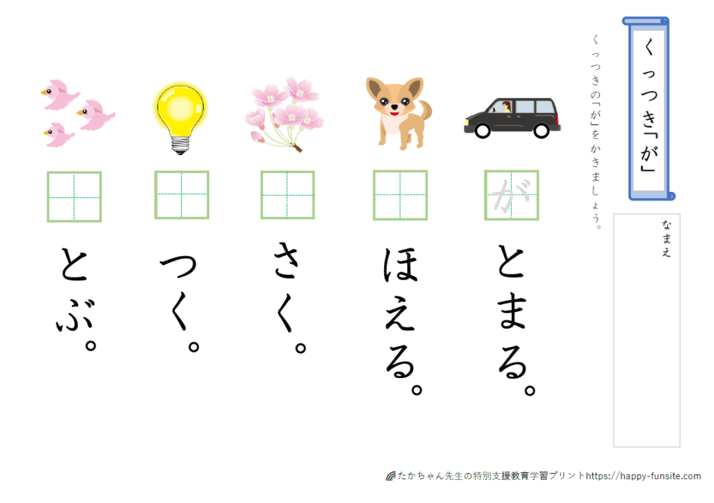 また、今回は「助詞をくっつける言葉だけを書く」シンプルな形式にしています。