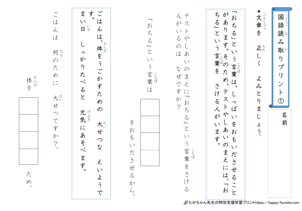 特別支援が必要なお子さんだけでなく、文章の読み取りを丁寧に取り組みたいお子さんにもぴったり。