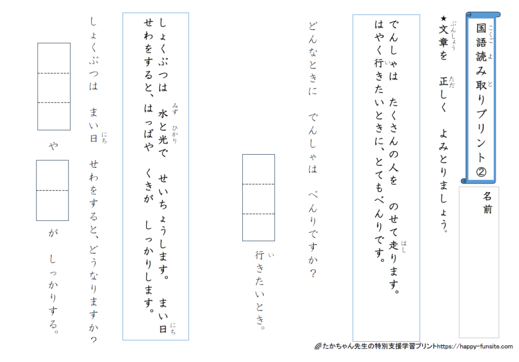 国語の読み取りプリント 特別支援教材「文章を正しく読みとる」②