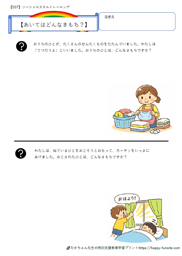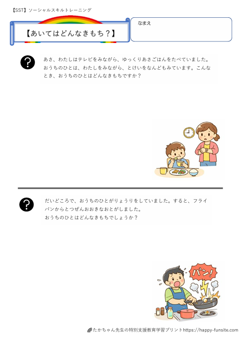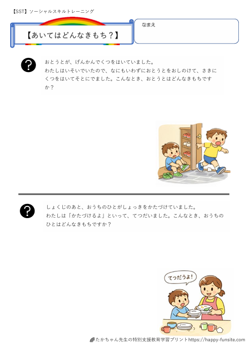 SST相手の気持ちを考えるプリント【生活編】です。