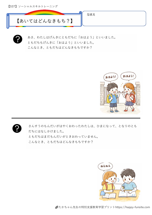 SST 相手の気もちを考えるプリント:学校②