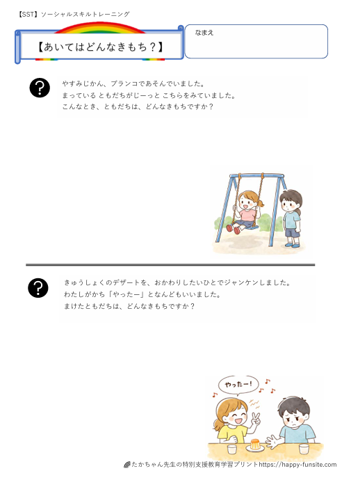 SST相手の気持ちを考えるプリント【学校編】です。