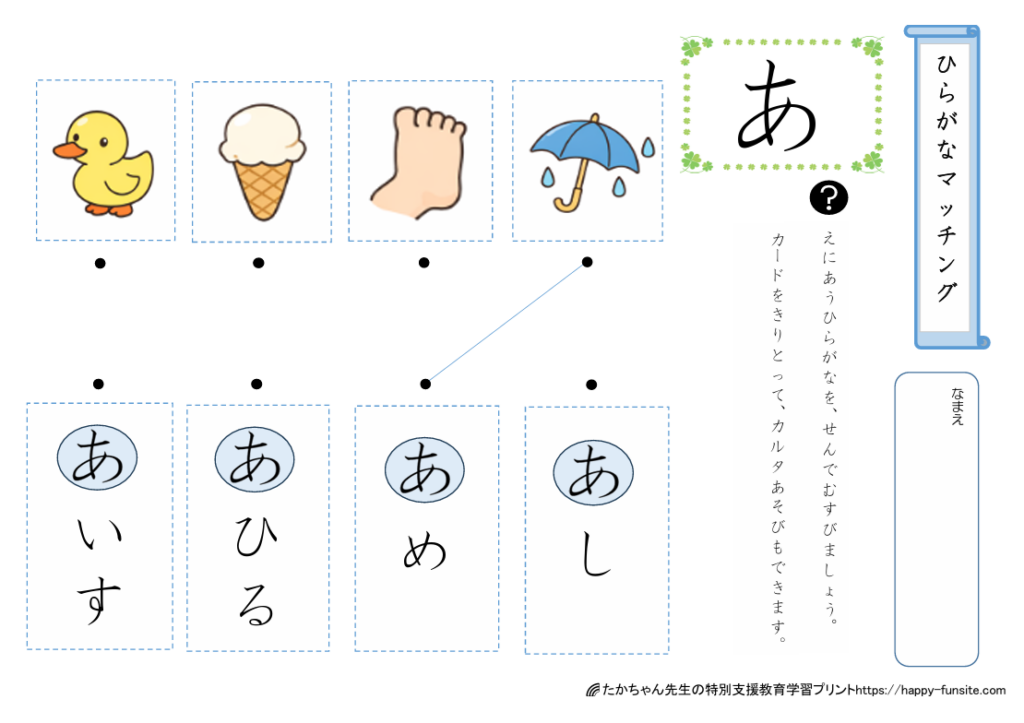 ひらがなマッチングプリント「あ」