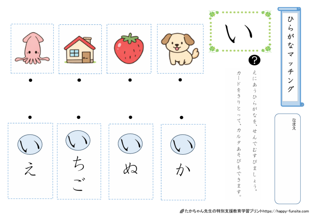 ひらがなマッチングプリント「い」