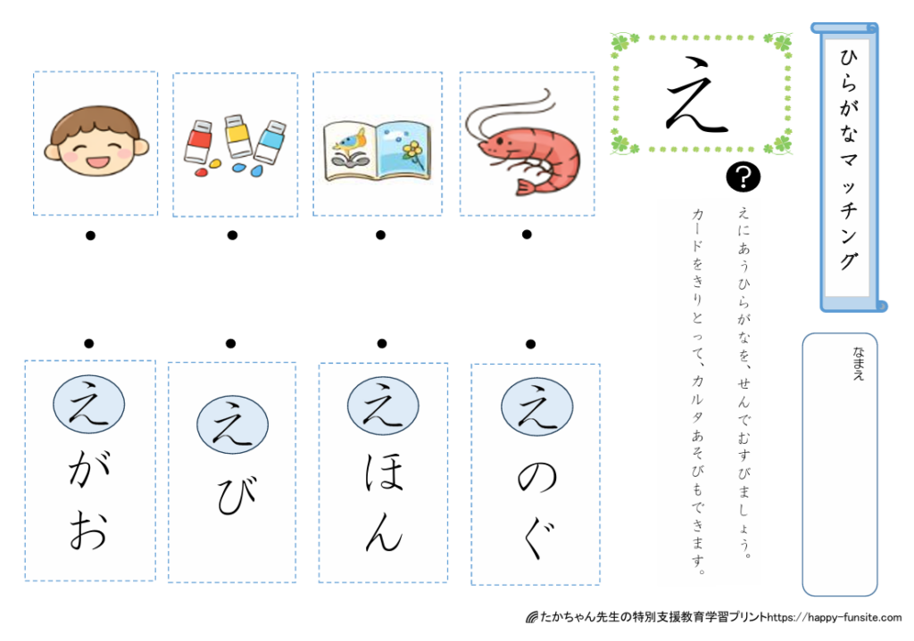 ひらがなマッチングプリント「え」