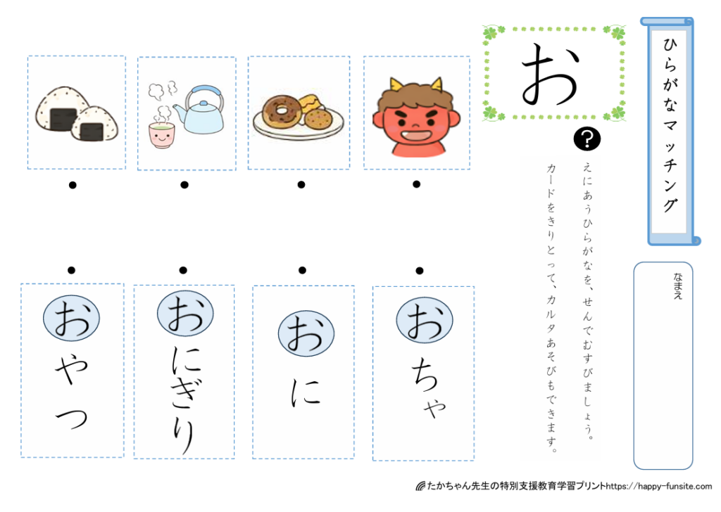 ひらがなマッチングプリント「お」