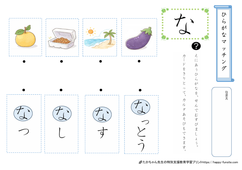 ひらがなマッチングプリント「な」
