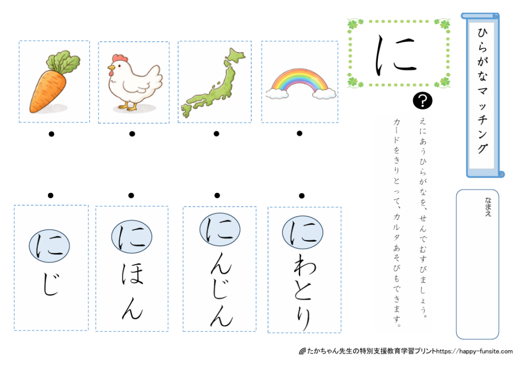 前回は、ひらがなマッチングプリント「たちつてと」を提供しました。