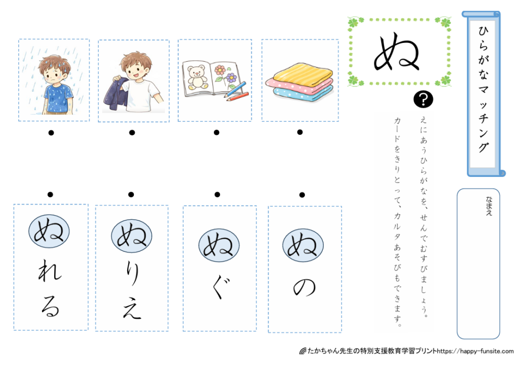 ひらがなマッチングプリント「ぬ」
