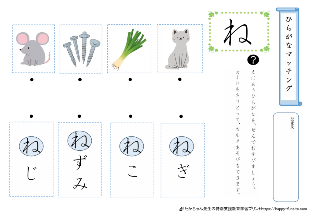 ひらがなマッチングプリント「ね」