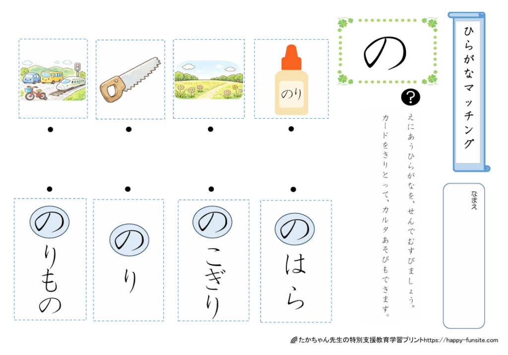 ひらがなマッチングプリント「の」