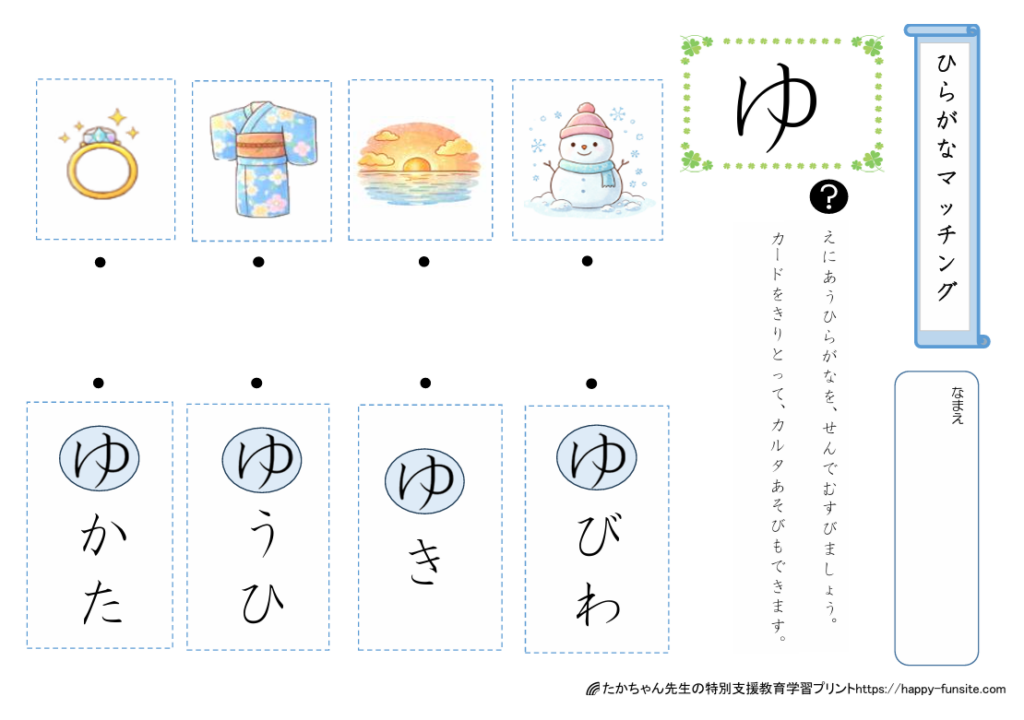 ひらがなマッチングプリント「ゆ」