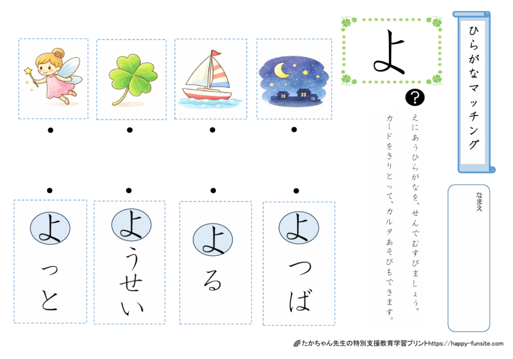 ひらがなマッチングプリント「よ」