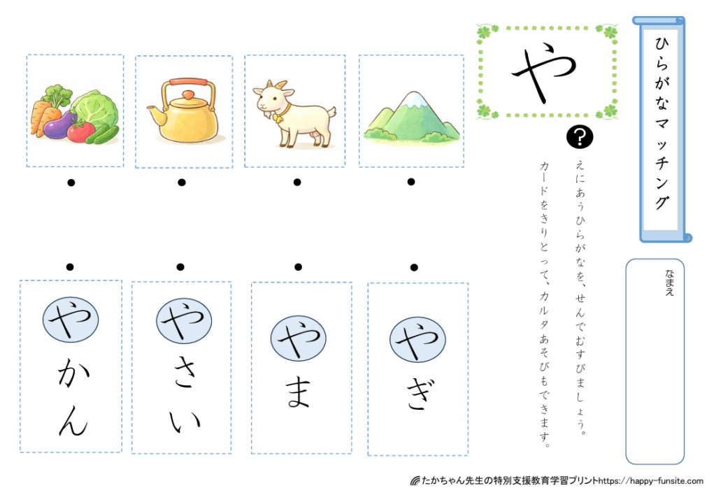 ひらがなマッチングプリント「や」