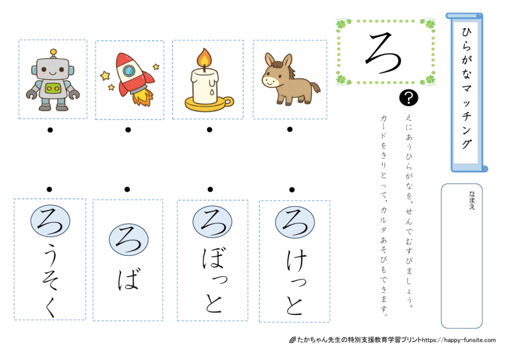 ひらがなマッチングプリント「らりるれろ」