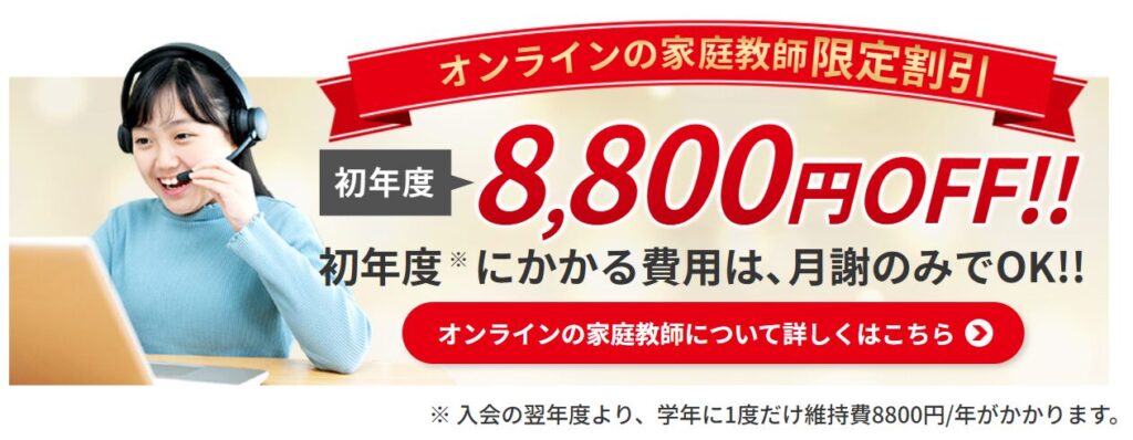つまり、オンライン家庭教師コースに限り、初年度は月謝のみでOK!