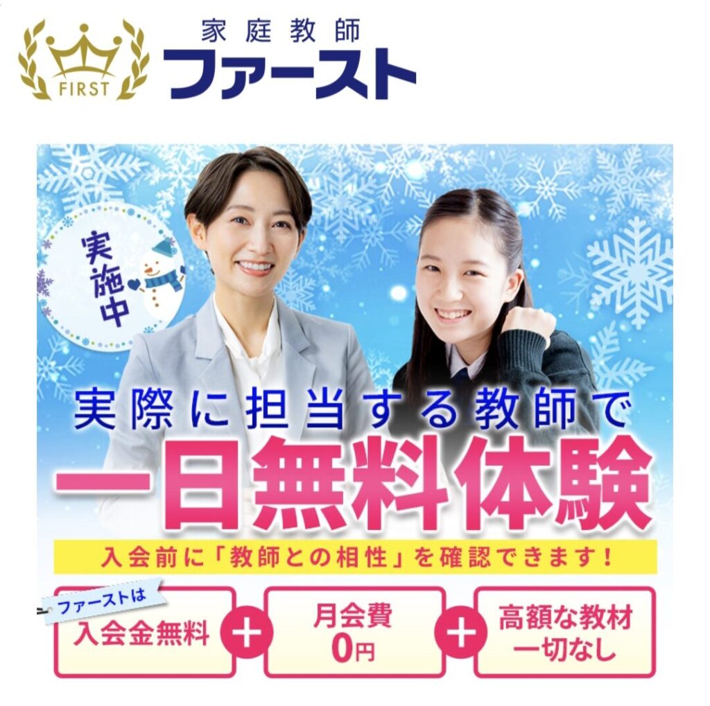 1つ目は、家庭教師ファーストの1日無料体験キャンペーンです。