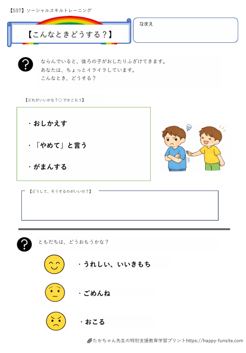 こんなときどうする?SSTプリント②「後ろの子がふざけてくるとき」