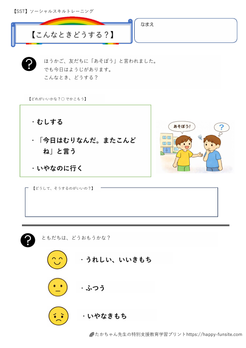 こんなとき どうする?SSTプリント③「誘われたけど用事があるとき」