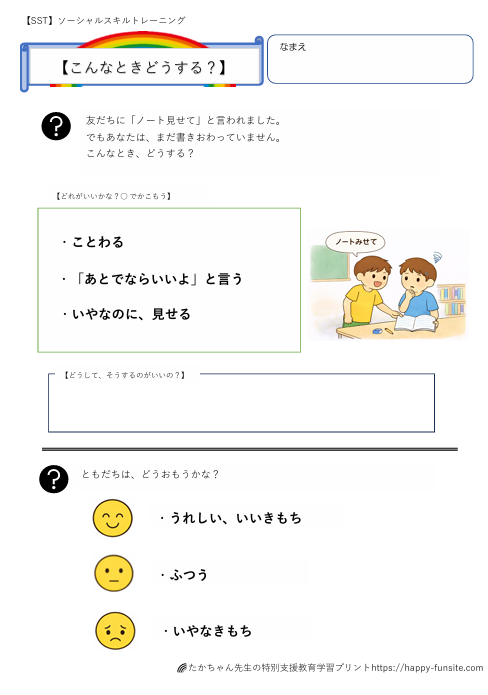 こんなとき どうする?SSTプリント④「ノートを見せてと言われたとき」