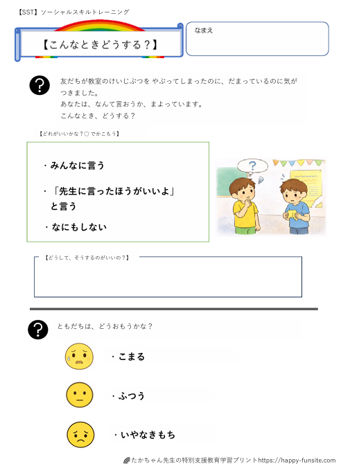 ▼前回の学習プリント「こんなときどうする?SST【低学年用】」