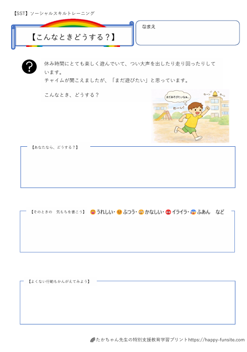 こんなときどうする?SSTプリント①「まだあそびたいとき」