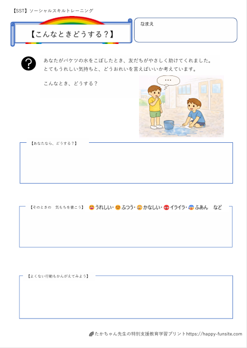 こんなときどうする?SSTプリント「友達に助けてもらったとき」