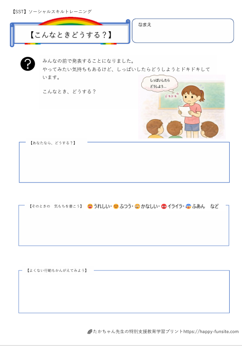 こんなときどうする?SSTプリント「頑張りたいけど不安なとき」