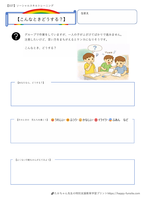 今回は、「こんなとき どうする?SSTプリント【高学年用】」です。